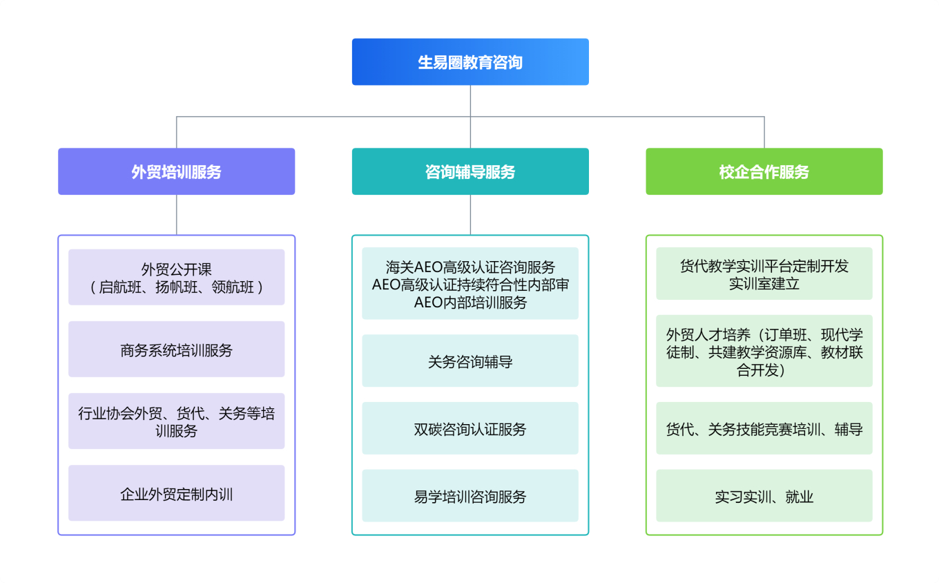 公司結(jié)合國(guó)際供應(yīng)鏈外貿(mào)綜合服務(wù)及人才優(yōu)勢(shì),立足外向型企業(yè)人才需求,成立湖南生易圈教育咨詢(xún)有限公司。